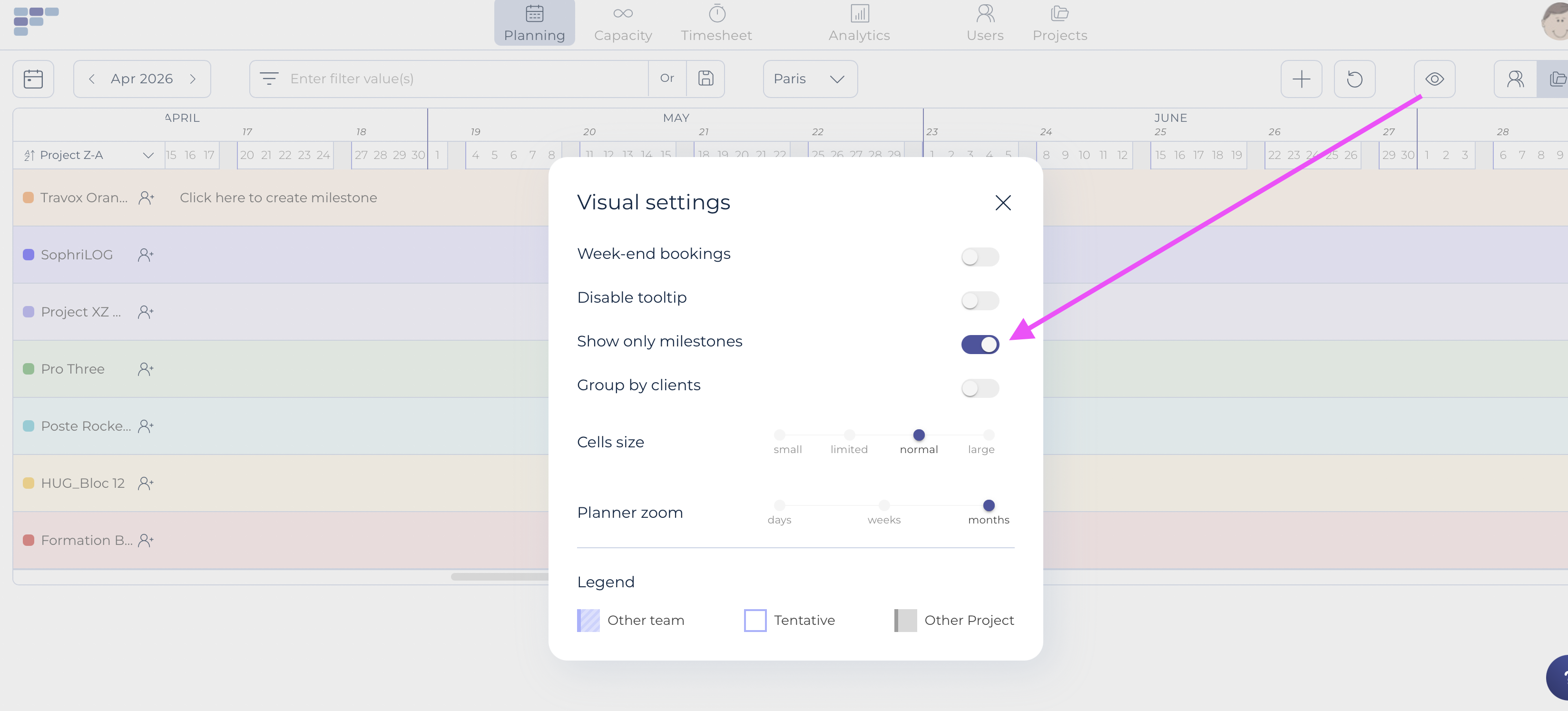 Beachten Sie, dass Sie über eine visuelle Einstellung festlegen können, nur Meilensteine anzuzeigen: